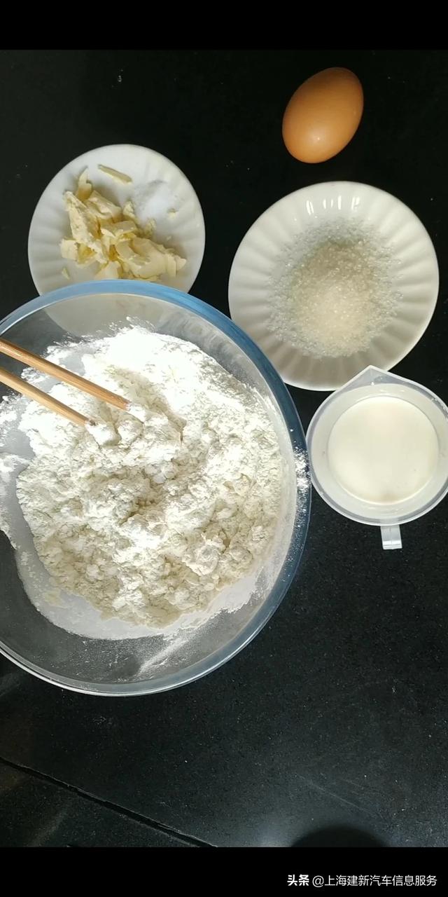 首先准备280克高筋面粉,3克酵母粉,2克盐,30克白糖,30黄油,140毫升牛奶