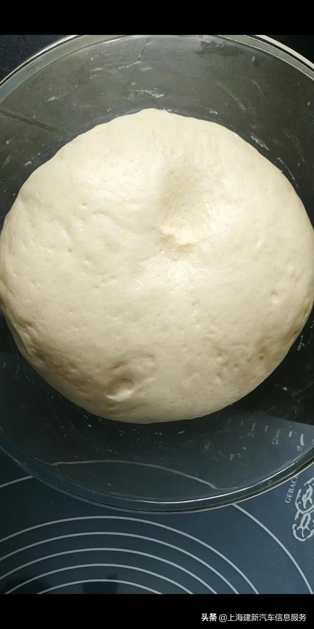 第一步牛奶微波稍微加热一下,把酵母粉放入温牛奶里,用筷子搅拌下,面粉打1~2鸡蛋,盐,糖,都放进面粉里,一起搅拌,搅拌差不多了,把黄油放进去,和面粉一起揉搓,揉成面团轻轻扯开就有像手套膜就行了,然后把面团放开盘子里盖上保鲜膜,让面团发酵~
