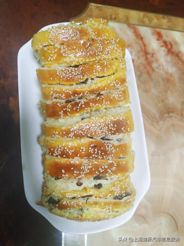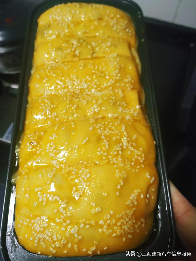 第二步面团发酵好,拿出到案板上揉搓排气,然后分几个剂子,用擀面杖擀成一个长条撒上红豆,卷起来放入吐司模具里,全部完成后,就等二次发酵,这时用一个蛋黄加点蜂蜜搅拌,二次发酵好了,就刷上蛋黄和蜂蜜,再撒上芝麻,烤箱预热上下火140~150度进去烘烤,大概20分~30分钟,看各家烤箱,多留意就行了