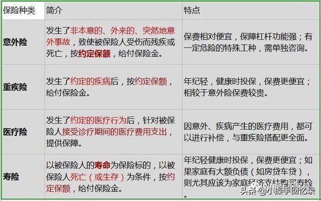 目前,我们经常听到市场上的保险主要包括医疗险,重大疾病险,意外险,寿险等险种。所以,我们做老百姓买所有的预防保险或只是其中选择一个或者多个购买,下面我给大家几个参考方案: