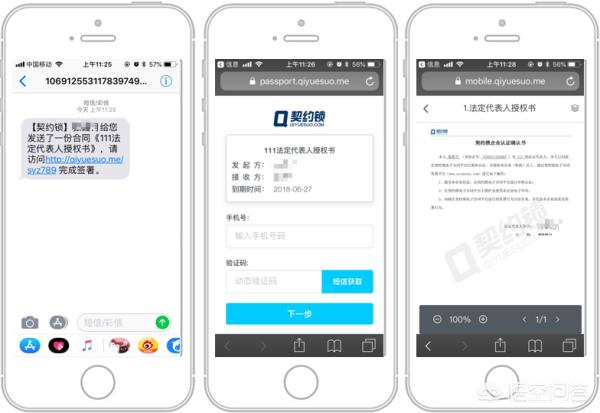 签署方通过短信或微信等途径接收到发起方发送的签署请求后,签署方可直接在手机上查看合同内容和完成签署,具体流程如下:
