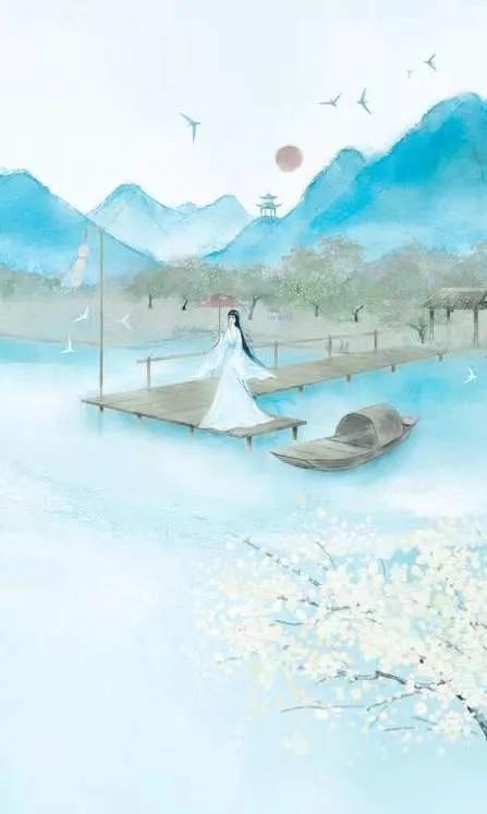 千枝万树桃梨开,漫天花雨与风随。春有约誓言定!鸳鸯紫雁款款来。少女江边会情侣,年年岁岁俩相爱。