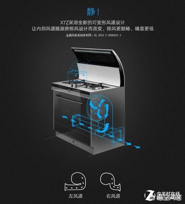 在排风管中,这款火星人X7集成灶使用了可变型结构,当我们向左或向右不同出风方向的排风口时,能够改变排烟管中的结构,使之拥有更好的排烟速度和导风效果,大大提升排烟顺畅程度。同时这一结构能够大大减少集成灶的工作噪音,让我们在厨房中能够享受到更加高品质的操作环境。