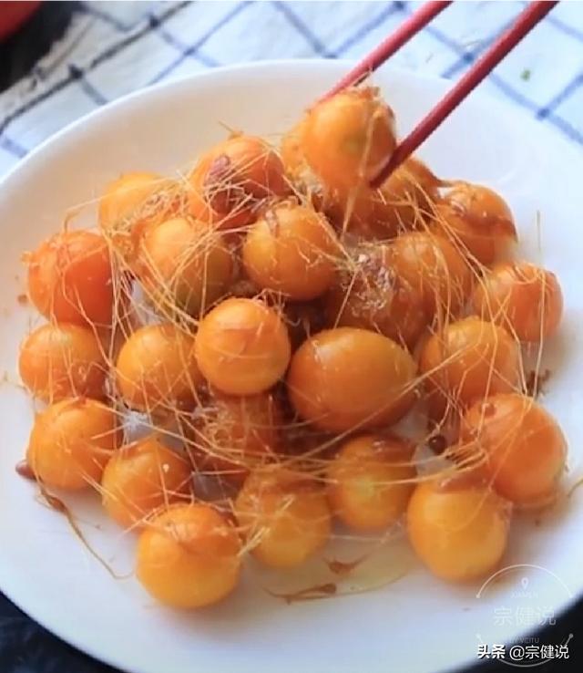 2、地瓜丸子一定要趁热拔丝。