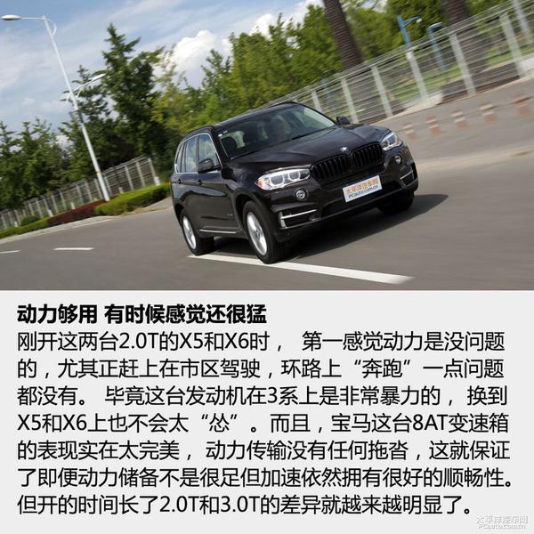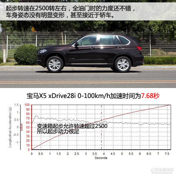 对于X5来说,采用一台2.0T发动机总会让人心存疑虑,这么大这么重的SUV,四缸发动机真的拖得动吗?从我们的实测来看,X5 28i的百公里加速成绩一点也不慢,这只是比3.0T的35i车型慢了1秒左右,可以说表现还是很合格的。当然,2.0T与3.0T发动机毕竟是有排量上的差异,所以在动力输出特性上来说还是存在不同,但总的来说豪华SUV纷纷引入2.0T发动机,利远大于弊,你只需要稍加适应其特性,就能在日常畅快的使用它。
