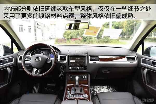 本次2016款途锐在内饰部分的变化可谓是少得可怜。整体风格依旧延续2015款的设计,虽然不算时尚靓丽,但看着却十分成熟稳重,再配上恰到好处的桃木装饰,整体给人的感觉颇具豪华气质。