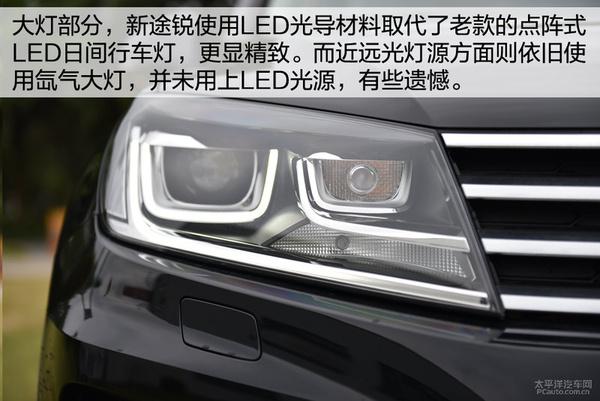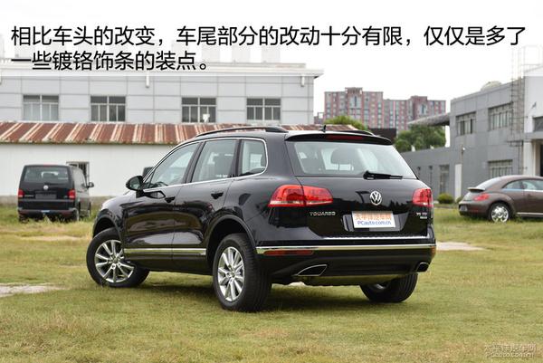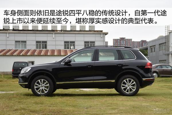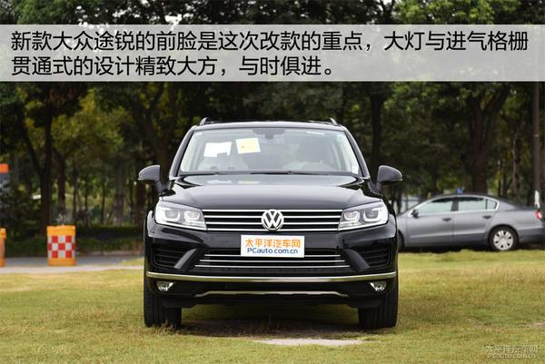 2016款大众途锐的主要变化在于车头部分,之前大灯内侧的尖角被削平,配合上贯穿式的进气格栅,亲切的家族风格让它更有一种平易近人的气质,而宽大的车头让它看上去也有足够的霸气,2016款车型下进气格栅造型也小有变化,并且增加了一条镀铬,与侧面镀铬条连成一体,外观整体感更好了。
