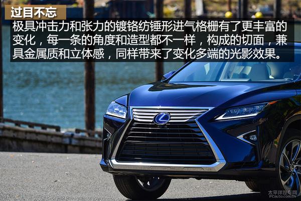 雷克萨斯的“纺锤形格栅”设计已经为人所熟知,但是这个家族化设计在每一款车型上都有新颖的变幻,所以当看到全新RX之时,依然会有耳目一新的感觉,各种凌厉的线条相互交织,再配合雷克萨斯出色的漆面技术,不但产生了丰富而极具质感的光影效果,而且由此勾勒出的车身及细节轮廓,都能带来视觉上强烈的冲击,整个车型会显得很有活力。