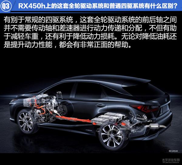 全新RX的450h三款车型均配备新的电控全轮驱动系统,有别于常规的四驱系统,这套全轮驱动系统的前后轴之间并不需要传动轴和差速器进行动力传递和分配,不但有助于减轻车重,还有利于降低动力损耗,介入反应速度方面也有所提升。不过,RX定位并非越野利器,它的四驱只是为了增加脱困能力,这种出发点与同级别大多数豪华中大型SUV是一致的。