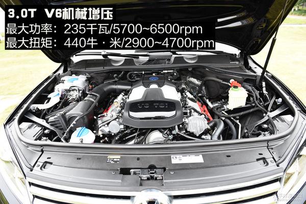 2016款途锐虽然依旧采用了老款3.0T V6机械增压发动机,但经过工程师的重新调校,发动机功率提升了22kW,扭矩提升了20Nm,最大功率:235kW/5700-6500rpm;最大扭矩:440Nm/2900-4700rpm,匹配的变速器还是8速手自一体。除此之外,官方公布的百公里油耗也下降了一升,为10.2L/100km,而0-100KM/h加速时间缩短了0.1s,达到了7s。而这也是同级车型中,卖得最便宜的3.0T汽油发动机车型,这也是途锐的核心竞争力。