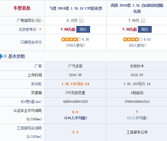 其实对于两款车来说,更推荐的应该是手动车型,雨燕的4at太老,油耗表现并不好,飞度的cvt变速箱对于那台能输出131马力的发动机来说也有些拖后腿,所以还是推荐手动车型