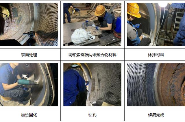 接下来我们就看一下索雷碳纳米聚合物材料技术现场是如何修复真空伏辊网笼磨损的吧: