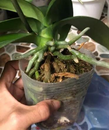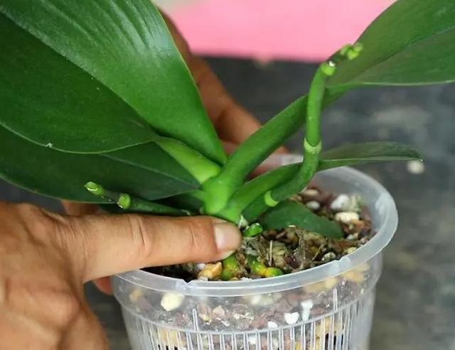 肉质根系很怕积水,而水苔的吸水能力极强,所以蝴蝶兰的浇水就一个技巧,就是让水苔永远保持不干不湿的一个状态。