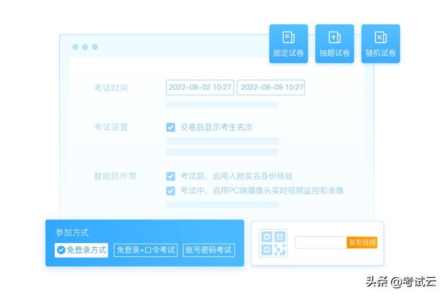 考生按要求使用电脑、手机或Pad在规定的时间内,通过发布的考试入口进入参加。考试时有各种防作弊措施能组合使用,防止考生作弊行为,确保线上考试公平公正。具体有: