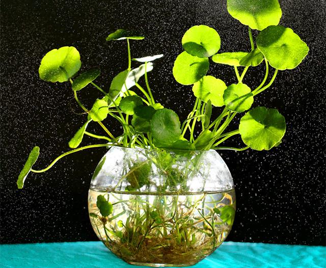 首选当然就是铜钱草,碧绿像极了铜钱的叶片,作为水培植物中最受欢迎的植物之一,据说还有一定的风水作用呢,如果养殖在小圆形鱼缸中,那就需要用河沙或者陶粒将根部压在水底,如果是稍大一点的鱼缸的话,那就需要用泡沫做一个漂浮器,让根系在泡沫底部,叶片在泡沫上面,这样铜钱草就会长得很好。