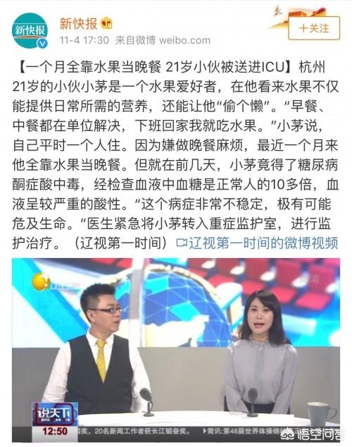 把水果当成正餐来吃,要看是怎样的程度,如果像新闻报道中的那个一个月全靠水果当晚餐来吃这肯定是会出问题的。