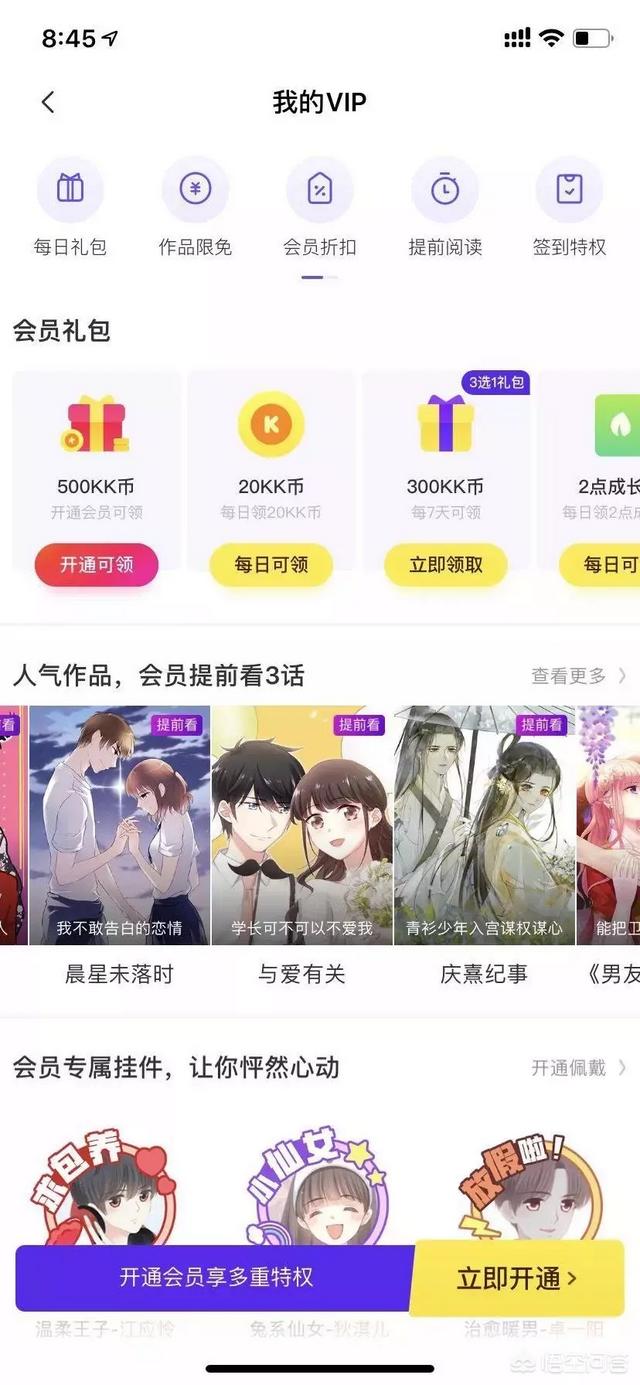 相对于传统漫画杂志,漫画 App 可容纳更多作品,题材类型也更加多样,能满足不同用户需求。在内容资源上占据优势,为平台开展“内容付费”铺好了路,这也是漫画平台实现盈利的一大途径。以《快看漫画》为例,平台使用单点、抢先看的付费模式,推行全平台付费会员。
