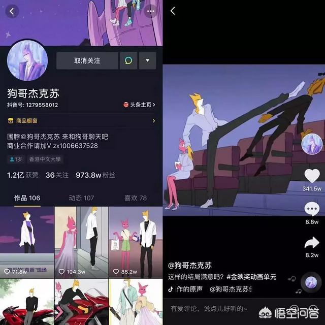 对于新入局的后来者,短视频平台保持开放的态度,只要内容质量高,就能在短时间内吸粉百万。抖音号“狗哥杰克苏”就是个很好的例子,去年 9 月入驻,通过持续产出黑色幽默式的动漫内容,目前已积累 973.6 万粉丝。