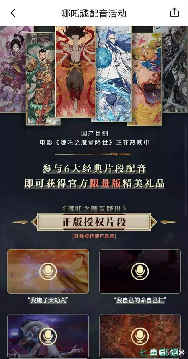 此外,音频类 App 也借着《哪吒》的热度,开展了关于电影片段的配音活动,参与者可挑选《哪吒》的中一个片段配音,就有机会获得《哪吒》的精美周边礼品。活动吸引到众多用户参与其中,这为产品的衍生功能起到了不错的宣传。