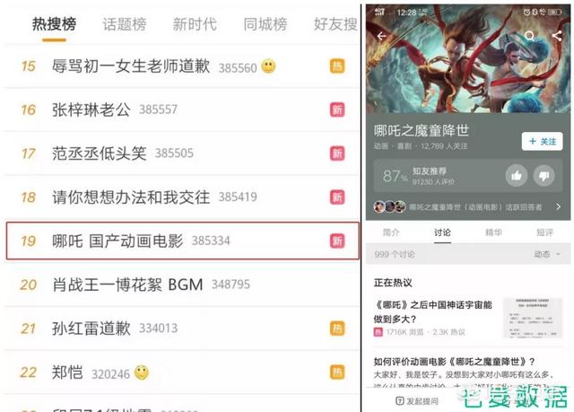 自 7 月 26 日起,《哪吒之魔童降世》迅速在各大平台引起众多讨论,关于电影中“哪吒”的热门话题出现在知乎、微博等社交平台中,讨论者众多。