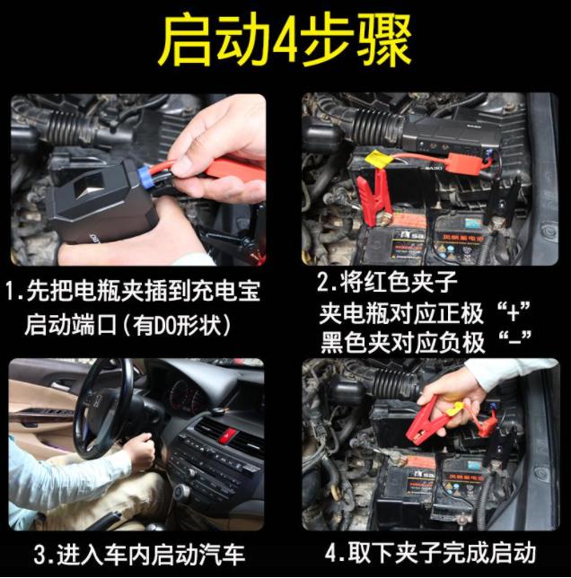 3、移动应急充电宝充电:启动汽车应急充电宝和手机充电宝的原理差不多,没电了就给汽车充电就能开启。小巧方便。价格几百元左右,以防万一建议车主可以在车上备一个,一般4s店和网上都有卖,方便在比较急的情况下车子熄火可以派上用场。只要将充电器的夹子夹在接线柱上,按一下充电宝的开关即可(手机充电宝可不能做这个)。