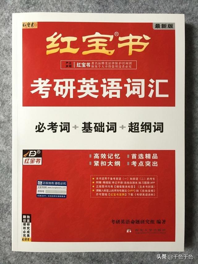 2.《红宝书》,红宝书的特点是单词比较全面,而且罗列得比较好,如果你底子还不错,不排斥识记的话,可以用这个,非常全面。