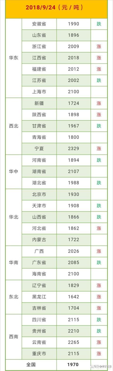 虽然说东北玉米在全国具有重要地位,但玉米价格却差强人意,处于全国最低价格,截止9月24日,全国玉米平均价格1970元/吨,最高价为宁夏2329元/吨,东北的黑龙江1642元/吨,吉林1704元/吨,辽宁1829元/吨,内蒙古1722元/吨。从价格看,东北地区玉米价格低于全国均价141~328元/吨,差距很大。下面是9月24日玉米价格,供大家参考: