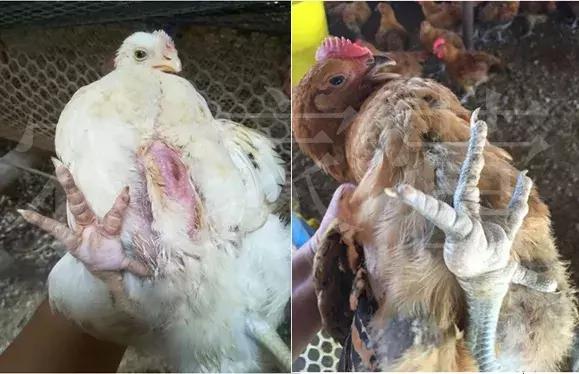 发病特征:病鸡表现脱水,羽毛逆立,发育不良,生长迟缓,消瘦,关节肿大,跛行,瘫痪。