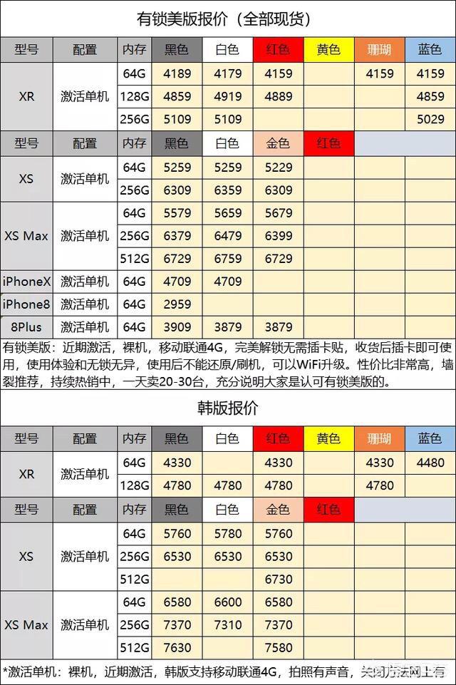 12月31日国内水货苹果手机报价表,有锁xsmax是5579