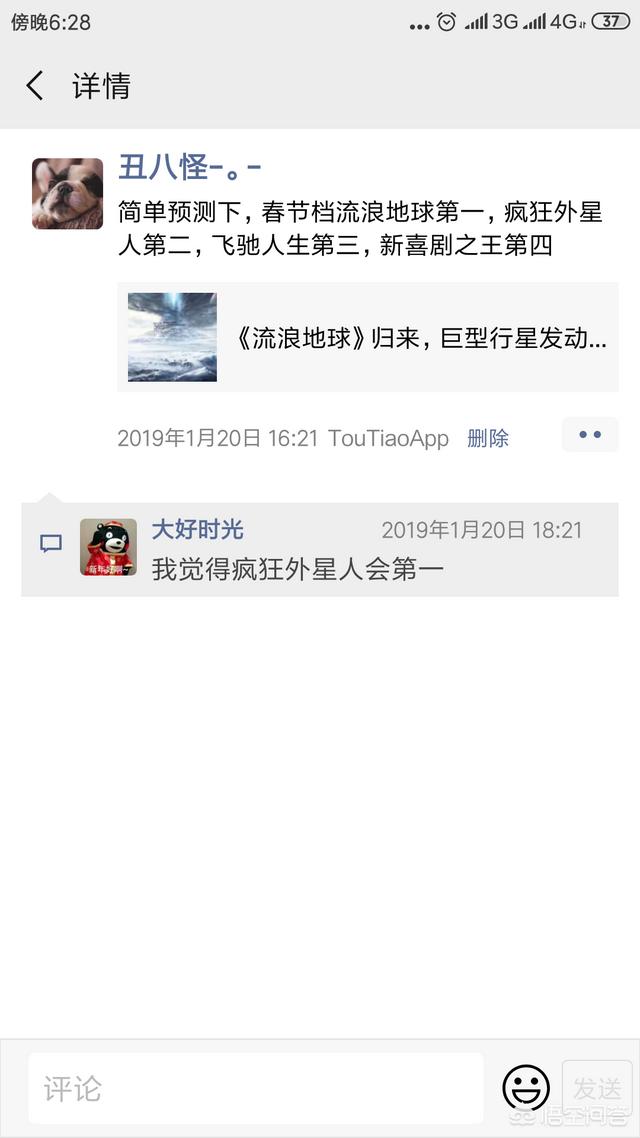 2019年春节贺岁档电影,哪部影片会是票房之王?你能猜到吗? 新农商网 更新于 2023-08-26 19:30:47 全部 1013 2019年春节贺岁档电影,哪部影片会是票房之王?你能猜到吗? 回复 共2条回复 我来回复 张大大大大炮斯内克 这个人很懒,什么都没有留下~ 评论 早已看透一切,容错率在新喜剧之王,应该会掉到第五,排在熊出没后面 赞同 2019-02-06 18:29:18 0条评论 摘下那满天星 这个人很懒,什么都没有留下~ 评论 流浪地球是潜力股,会有升值,别的只是冲名头没有后劲。 赞同 2019-02-06 20:05:34 0条评论 请 登录 或者 注册 后回复。
