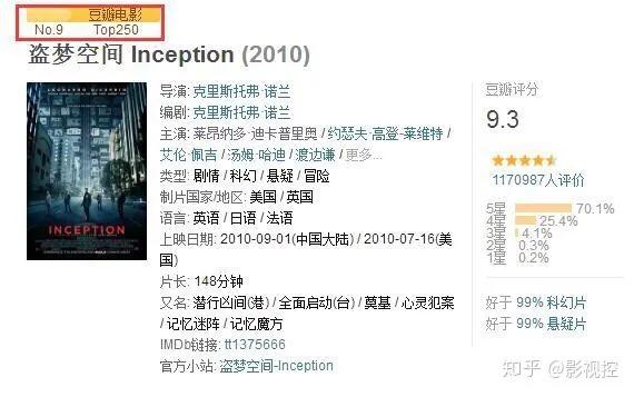 盗梦空间是诺兰一部极具科幻、想象的烧脑神作。电影无论是从特效、创意,还是剧情、演技哪一个维度来讲,都是值得特别推荐的。