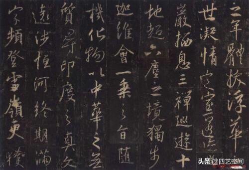 读帖过程中怎么个归纳呢?其实很简单,就是把相同的偏旁部首弄在一起,然后再把借(代)用的偏旁部首弄也在一起,找出其中的异同,你说说,当我们把这些准备工作都做好了,心中有数了再提笔写,这时要解决的就只剩技巧了,所谓熟能生巧,也只是个过程而己。如《圣教序》中"也“字的弯勾的变化,