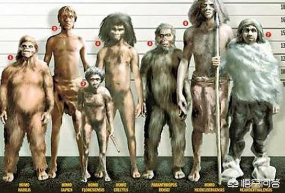 上图分别为人科各人种的示意图,从左到右分别为:1. 能人,2. 智人,3. 弗洛勒斯人(霍比特人),4. 直立人,5. 鲍氏傍人(可能是最早使用石器的人科生物),6. 海德堡人,7. 尼安德特人。上图的各种原始人都属于人科,但却是不同的物种,目前只有智人演化过来的现代人类存活,其他人种都已灭绝。