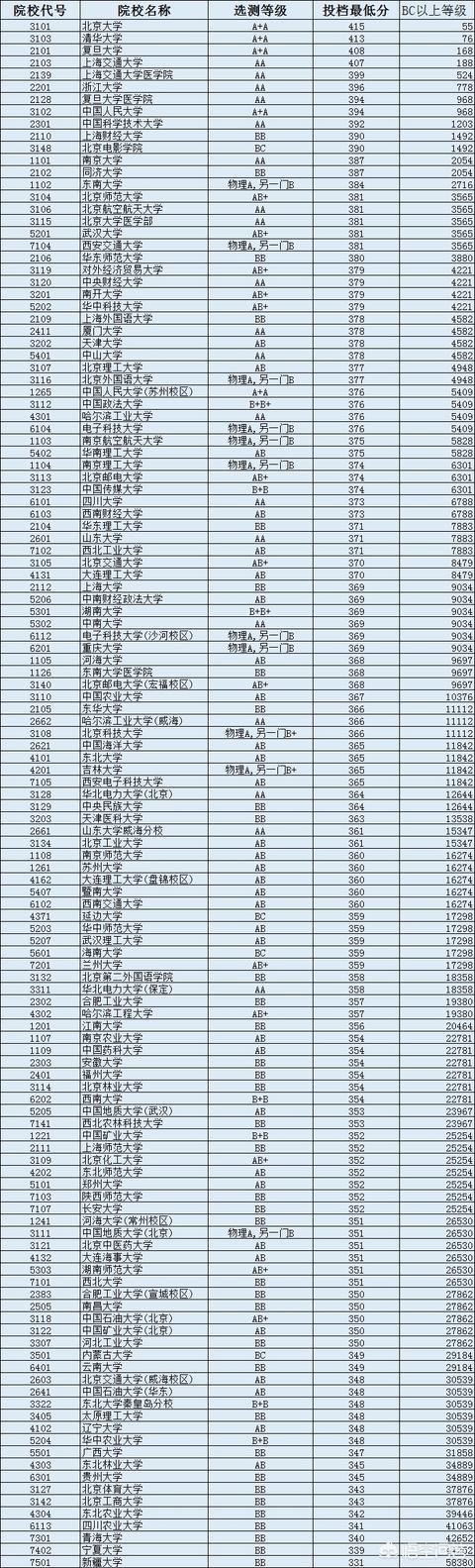 在知道了排名、线差和选测等级基本就可以划定关注院校了。