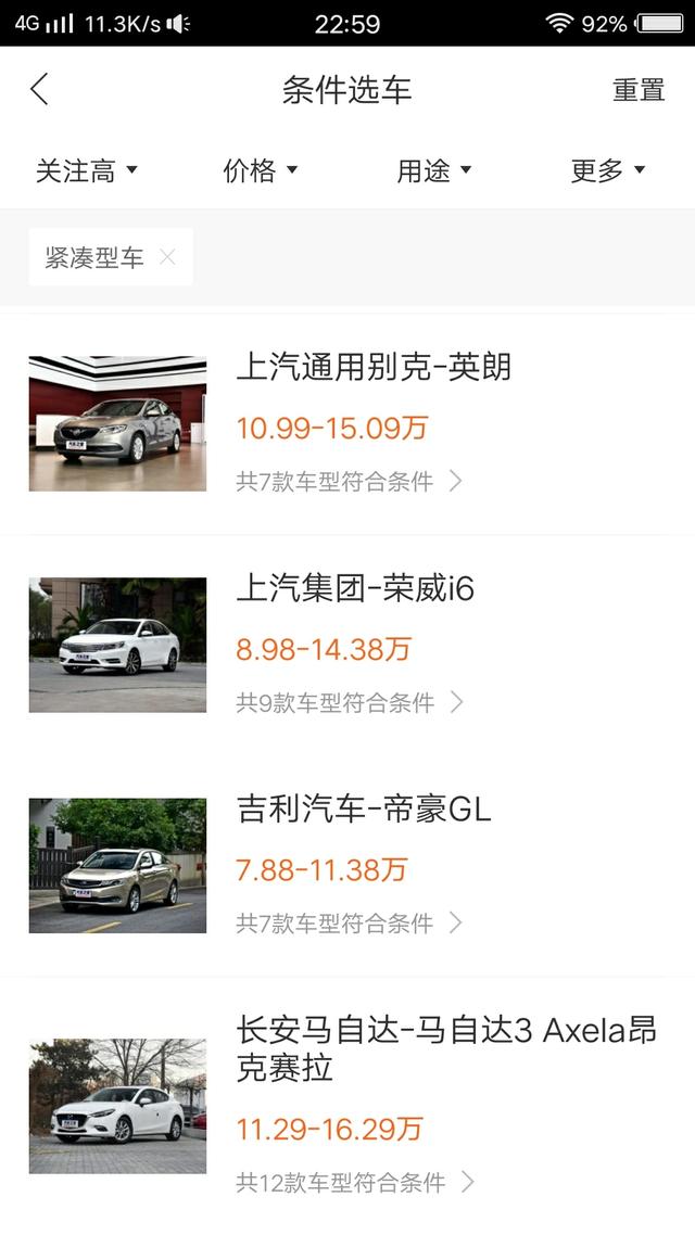2、通用别克 英朗 2017款 GT(三厢) 1.6L 手动进取版车身价格13.49万左右虽然这个价位只能买它的1.6排量版本,它的其它排量都超过了15万,但是它的外观、配置和做工,还是会让您列入考虑范围的。这款车的外观源于欧宝雅特,虽然挂着美国别克标,实际上是一款欧式车。英朗的外观非常漂亮抢眼,这个价位能和它比外形的车真得是少之又少,特别是那天际蓝,更是让人心动万分!1.6的发动机带DVVT技术,后悬挂是加了瓦特连杆的半独立悬架,虽不是独立悬架,但是操控方面,英朗表现得一点都不含糊,指向精准,方向盘低速轻盈、高速稳定,驾驶起来让人充满信心。配置有电动天窗、ABS防抱死、制动力分配EBD、16寸铝合金轮毂、倒车雷达、真皮多功能方向盘、后排座椅比例放倒、防紫外线隔热玻璃、车窗防夹手功能、带分区控制的自动空调、正副驾驶座安全气囊和前排侧气囊等。配置还有比较有科技感的安吉星系统,这个系统可以24小时远程为您提供导航、开车门、紧急救援等服务。
