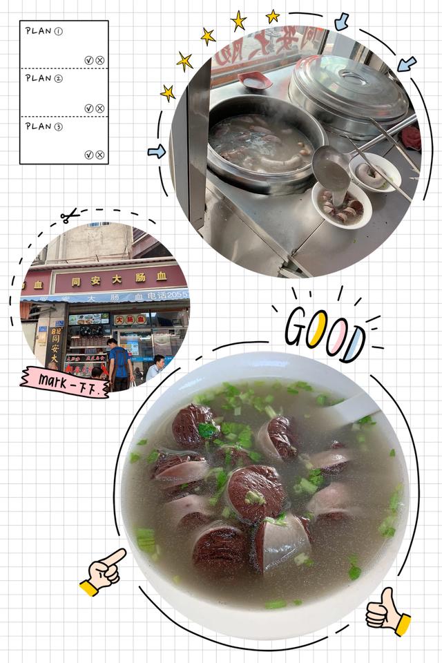 同安大肠血:猪大肠灌的猪血,肠衣很脆,血非常嫩,汤底胡椒味很浓,个人非常喜欢。