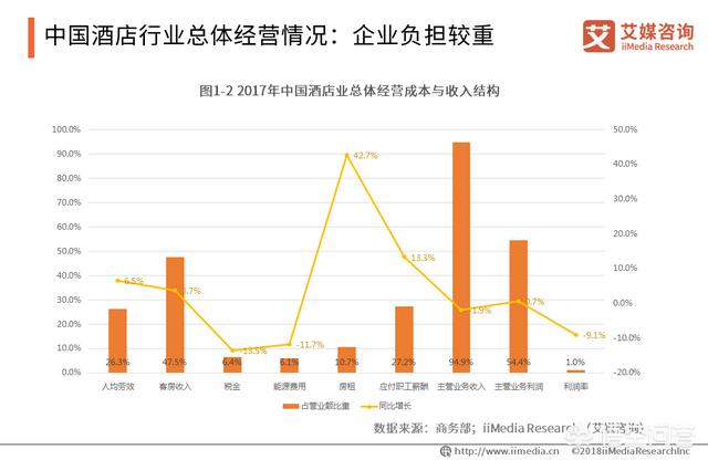 根据iiMedia Research(艾媒咨询)发布的《2018-2019中国酒店行业发展监测与商业投资决策分析报告》, 2017年酒店行业利润率仅为1.0%,比上年下降9.1%,酒店行业正在打造新业态、向大住宿业转型。