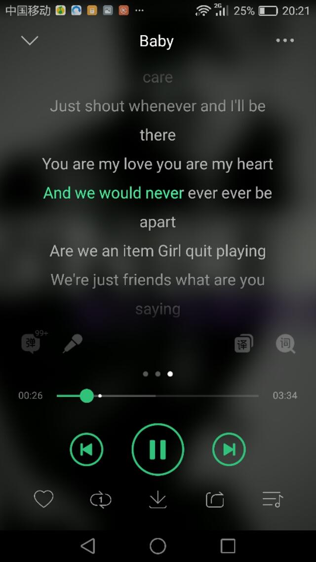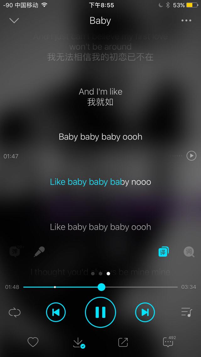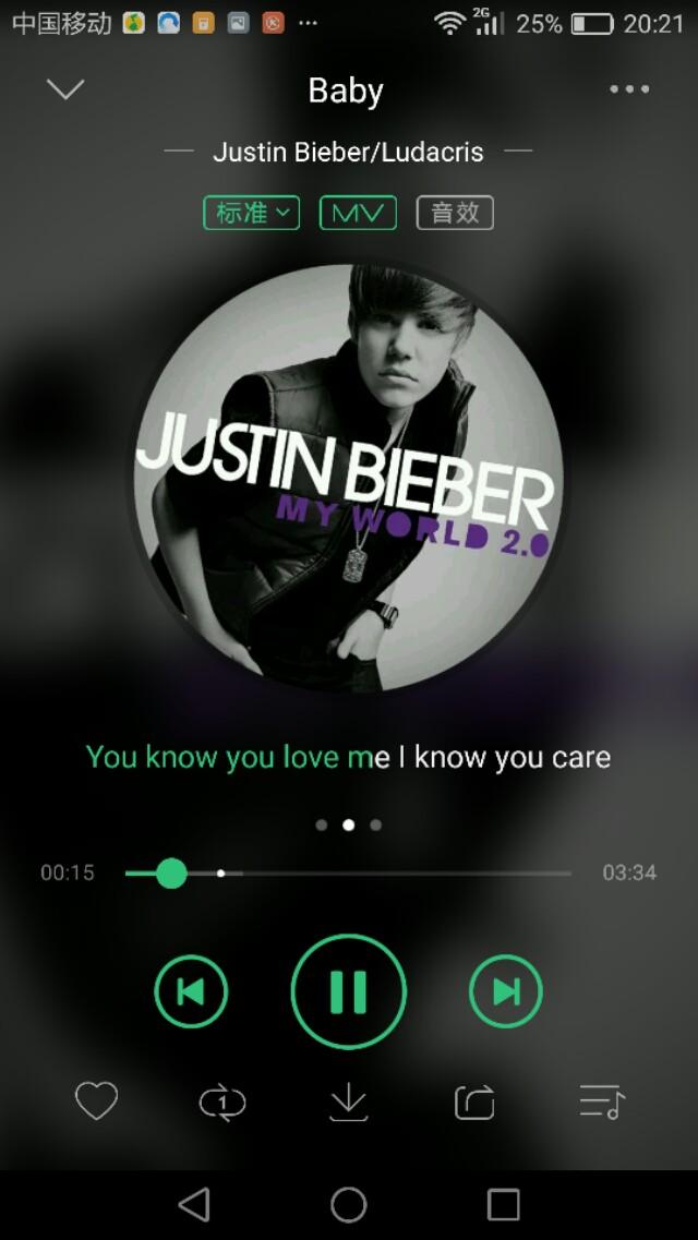我第一首会的歌就是我男神的Baby,第一次听的时候觉得这首歌特别好听,就学了这首歌,之后就爱上了男神别的歌