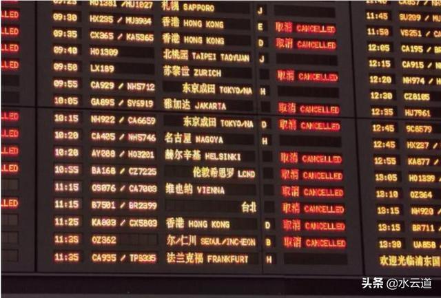 近几天,办理登机牌的地方人也不多,因为很多航班都已经取消了,就看到电子大屏幕上满是红红的取消航班通知。
