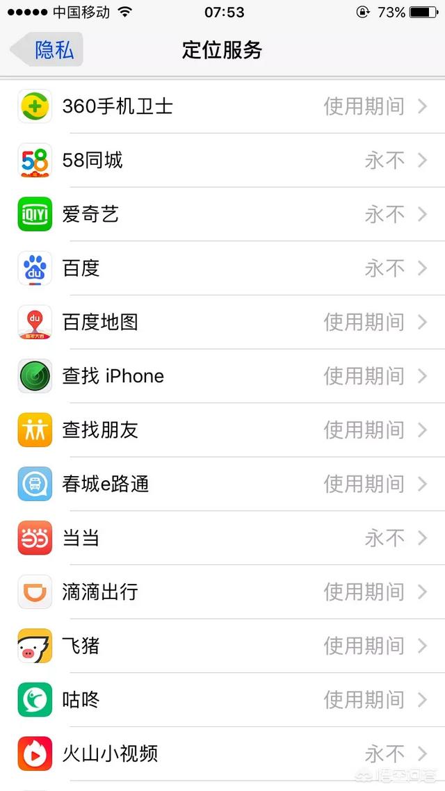 苹果系统里关于定位大部分有三种选项,,分别是:用不、使用期间、始终。个人感觉这些应该分类进行选择。