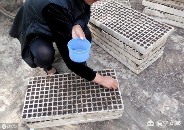 买回来的穴盘现在80度的开水中过一遍,消毒杀菌,千万不要选择100度的沸水,穴盘是塑料制品容易被烫变形,80度的水温足以杀死多数病菌,还可以保持穴盘不被损毁。消毒后添加一些腐殖土锯末等,需要提前搅拌均匀,添加到离穴盘口离0.6厘米高度左右,用筷子的小头戳个洞放入种子盖好,浇入少量清水,放在温暖的地方等待它慢慢发芽就可以了。也有种植好友会采用提前纸巾催芽的方法然后放入穴盘中,这样更好一些,可以在种植前期把控出芽率,也是一种很好的选择。