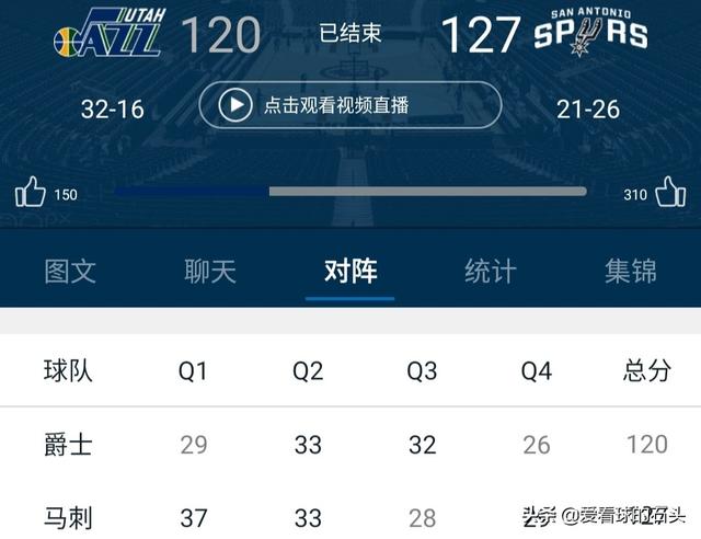 昨天的这场比赛马刺以127:126力克爵士结束了自己的三连败,而爵士则在负于马刺后遭遇两连败。