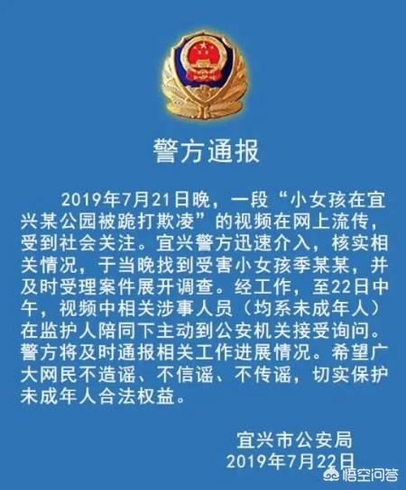 7月22日中午,事发地宜兴警方发布通告,受害女孩已经找到,并且经过顺藤摸瓜,也将那几个”瓜“查到了。随后,这几个”瓜“在父母的陪同下到警方接受询问。警方公告显示,这几个涉事”瓜“,均系未成年人。