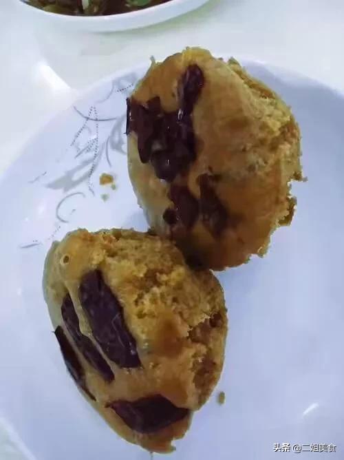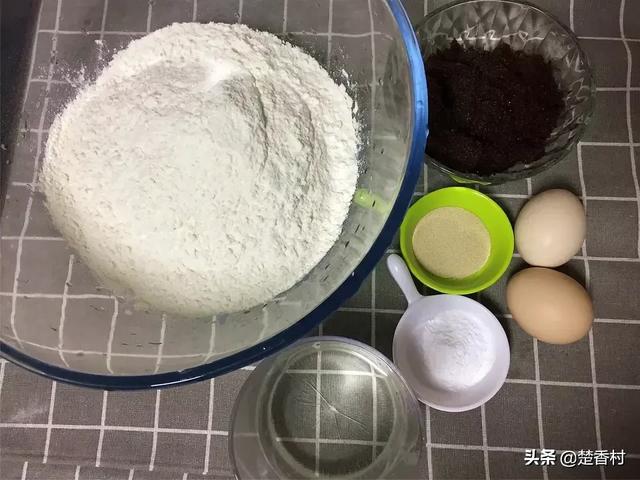 食材:面粉500克、红糖140克、酵母5克、无铝泡打粉3克,鸡蛋2个,清水330毫升,大枣适量