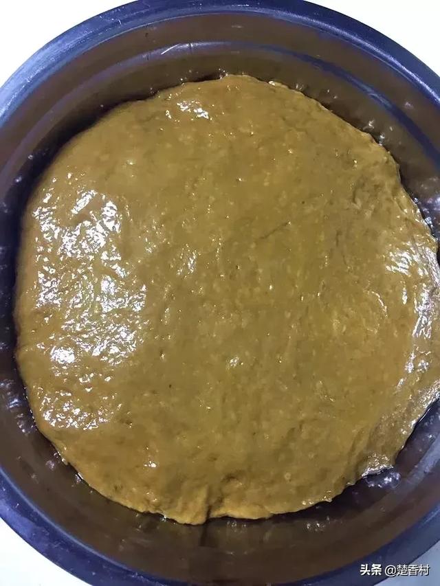 步骤四:把发酵好的面糊里面的气泡搅拌至消失,容器或模具刷油,把面糊倒入容器的一半左右,表面用硅胶铲磨平,手抹油磨平表面也可以,然后再次密封发酵半小时左右。