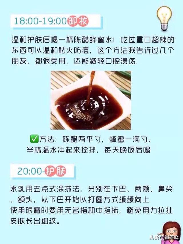 温和护肤后喝一杯陈醋蜂蜜水!吃过重口超辣的东西可以温和祛火防痘,这个方法我告诉过几个朋友,都很受用,还能减轻口腔溃疡