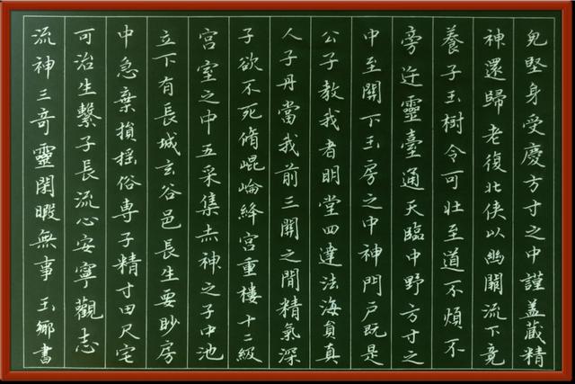书法上的大小一样,是一种视觉上的一致,而不是状如算子似的大小一样!有轻重调节,收放调整等,具体写的时候,时刻注意前边所写字的情况来调整;也可以有格子来参照。