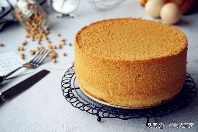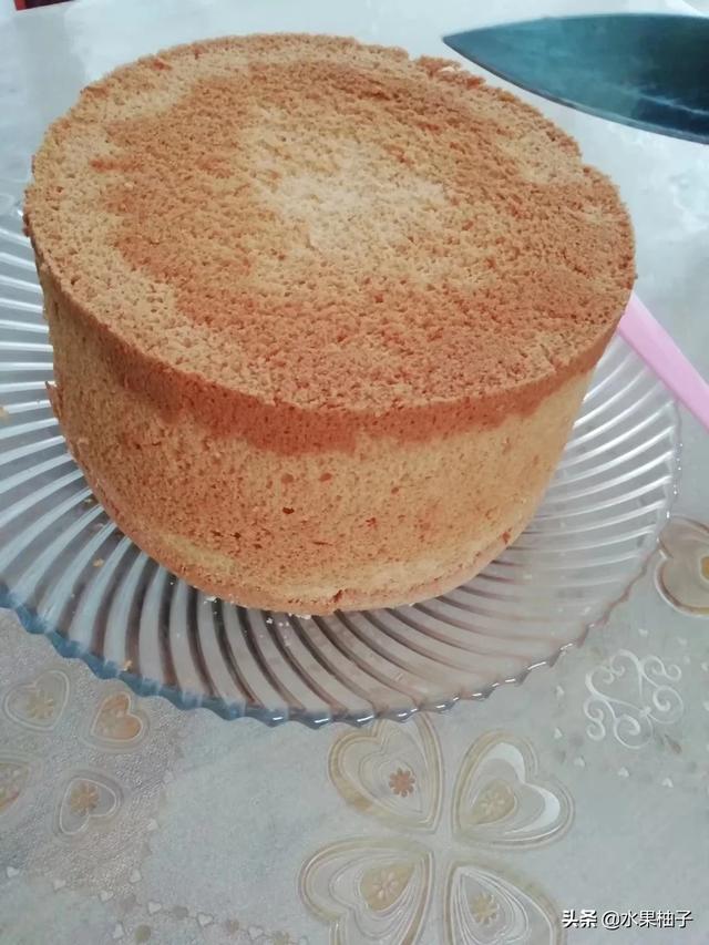 6.蛋糕出炉震几下把热气振出倒扣,完全凉透后脱模。