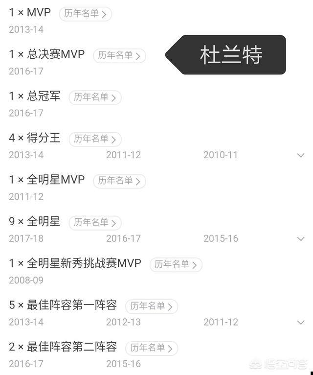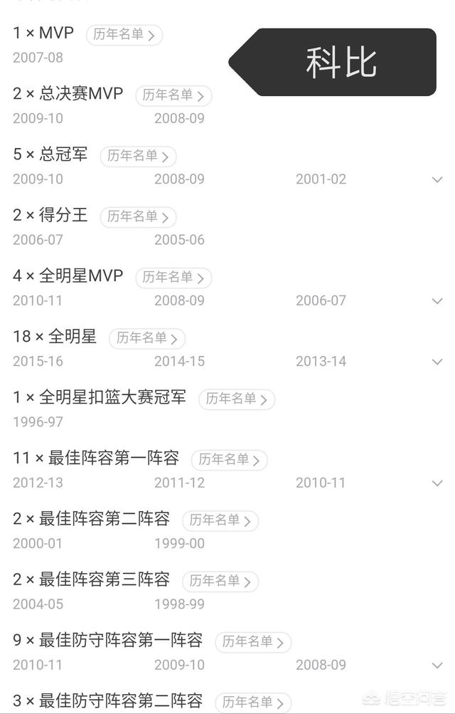 荣誉对比:科比VS杜兰特
