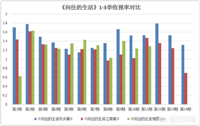 从节目内容来讲,第一季称《向往的生活农夫篇》,第二季称《向往的生活江南篇》,第三季称《向往的生活湘西篇》——农夫、江南、湘西,这三个词并不算是同类型词汇。由此反思,节目组初衷是回归田园,体验农夫生活;远离城市喧嚣,男耕女织,洗手羹汤,实为向往的生活。可以想象,《向往的生活》是挖掘了新的题材,第一季仅仅是试水,看市场反馈,才做出第二季、第三季的决定。但是,没有挖掘出了农夫之外的其他向往身份;反而延续了第一季的大部分内容,只不过换了一个地域,从北京郊外搬到了江南、湘西。依然是耕田、种菜、做饭、聊鸡汤、玩游戏。向往的生活,过程了不向往的一成不变。